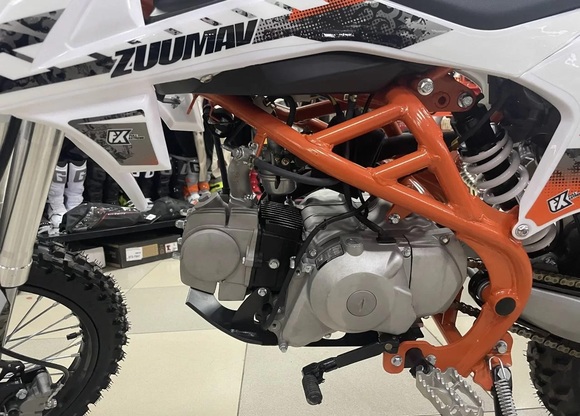 Питбайк Zuumav FX K3 125 cc — отличный выбор для покорения внедорожья. Его четырехтактный двигатель объемом 125 куб. см отличается отличной тягой с самых низов и низким расходом топлива. Крутящий момент двигателя передается на механическую коробку передач, что облегчает управление мотоциклом. Дополнительно питбайк комплектуется подвеской ZUUMAV, идеально подходящей для эксплуатации в агрессивных условиях. Стальная рама модели делает ее идеальной для тренировок по мотокроссу. Пластик кроссового мотоцикла имеет оригинальный дизайн и потрясающий яркий цвет графики