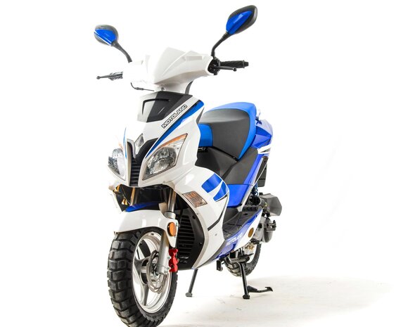 Мощный скутер Motoland F22 50 — это отличный вариант для загородного катания и поездок на рыбалку. На модели установлен одноцилиндровый четырехтактный двигатель мощностью 4 л/с и рабочим объемом 50 см3. Передний тормоз — дисковый, задний — барабанный. Колесные диски выполнены из алюминия методом литья. Выдерживает нагрузку до 150 кг, что позволяет перевозить одного пассажира. Под сиденьем есть багажное отделение. Приборная панель — электромеханическая.У нас Вы можете купить этот скутер с бесплатной доставкой по РФ и гарантией до года. Также его можно приобрести в рассрочку или в кредит.