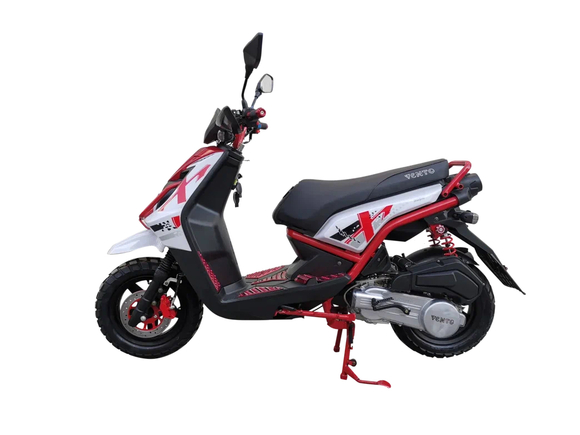 Скутер VENTO Smart ll – это компактная и доступная модель с 12-дюймовыми колесами. Его корпус по стилю стал репликой известного байка Yamaha BWS. Внедорожный дизайн техники дополняет практичная пластиковая защита для рук. Пространственная рама делает удобным использование транспорта для высоких водителей.Венто Смарт идеально подходит как поездок по городу, так и выездов на дачу. При этом эффективное сцепление с различным дорожным покрытием обеспечивает внедорожный протектор шин. Поставка в комплекте сигнализации с автоматическим запуском гарантирует безопасность и спокойствие владельцу.Движущую силу малолитражного байка производит 49-кубовый мотор с воздушным охлаждением, выдающий мощность порядка 10,8 л.с. Дополняется он обычным карбюратором и вариатором.
