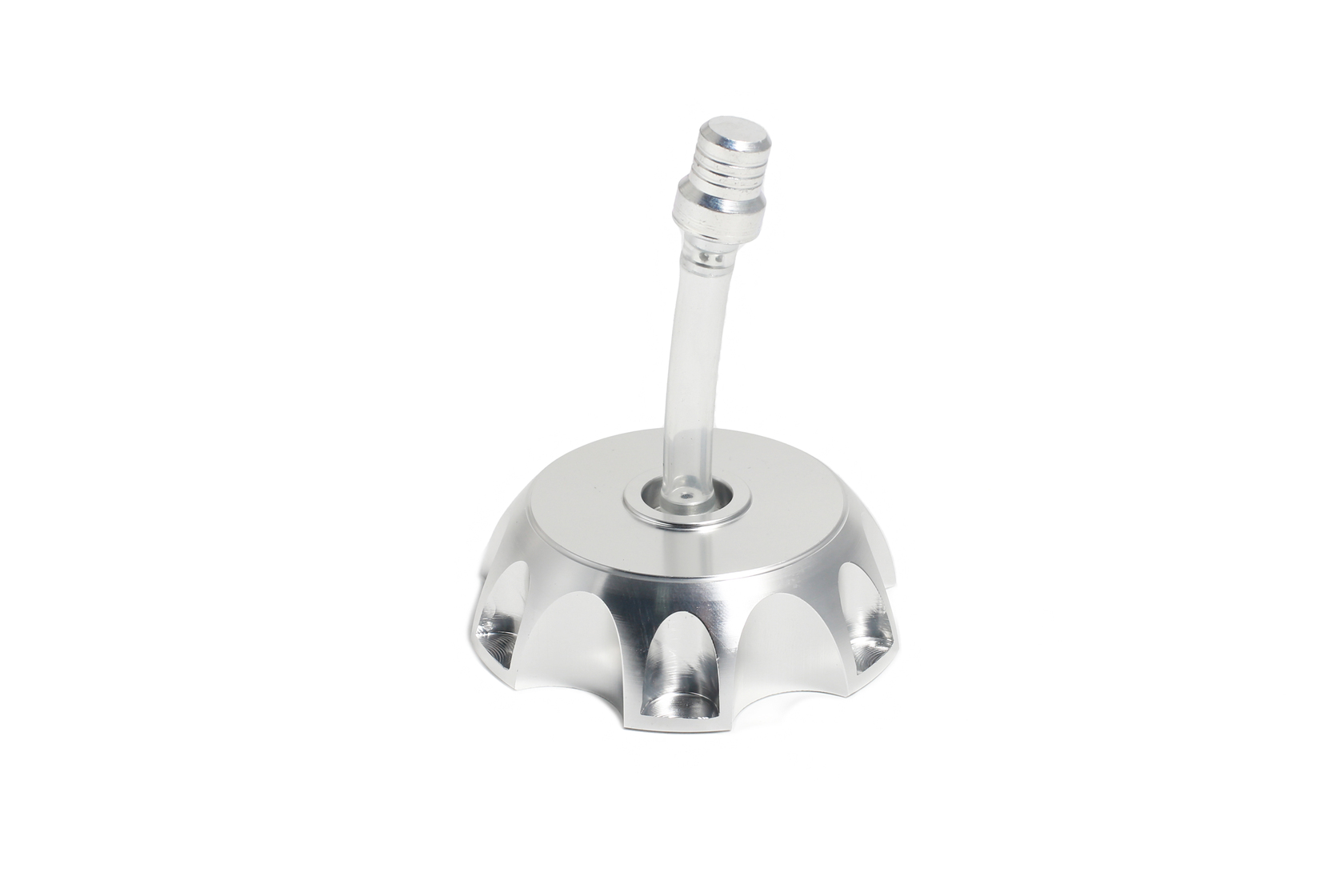 Универсальная алюминиевая крышка топливного бака серебристого цвета с клапаном. Изготовлена из хромированного CNC алюминия. В комплекте поставляется клапан с вентиляционным шлангом. Обеспечивает надежную герметизацию топливного бака и вентиляцию топливной системы. Подходит для 90% питбайков и широкого спектра эндуро мотоциклов.