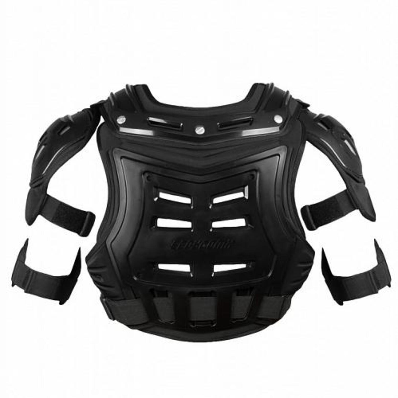 Представляет собой классическую черепаху с защитой груди, спины, локтей и плеч. Она обеспечит максимальный уровень защиты и комфорта. Защитные накладки на локтях и предплечьях не съемные, надеваются и снимаются одновременно с защитой корпуса, не требуют регулировки за счет эластичности рукавов. Основа выполнена из специального микросетчатого материала, обеспечивающего отличный воздухообмен. Система регулировочных ремней обеспечивает надёжную фиксацию защиты на теле.Особенности:• Эластиная сетка в основании черепахи, сохраняющая свои свойства после стирки, носки и падений;• Толстый качественный пластик защитных элементов, работающих как на удар, так и на скольжении;• Защита прошита прочными нейлоновыми нитками;• Съёмная защита спины позволяет стирать черепаху в стиральной машинке;• Мягкая ткань на воротнике не раздражает кожу;• Множество регулировок для подгонки защиты под мотоциклиста.